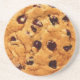Delicious looking chocolate chip cookie on round, sandstone coaster.