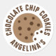 Chocolate chip cookie stickers with baker name. Modern round stickers personalized with your name or business. Make your own labels for packaging, party favors, boxes, bags and more. Cute cookie logo with bite taken out and crumbs. Fun stickers and sealers for DIY baking and pastry presents.