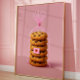Bring a fresh-baked feeling into your space with this chocolate chip cookie wall art print, featuring a stack of gooey cookies lovingly wrapped in a pink translucent bag and sealed with a heart tag. Set against a soft pink backdrop, this artwork brings together nostalgic comfort and a playful pastel aesthetic.