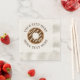 Chocolate donut custom party napkins for pastry and sweets. Cute round doughnut design with icing. Add your own name and text. Fun party supplies for wedding, Birthday, sweet 16, baby shower and more. Available in ecru, white, pink and blue.