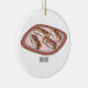 Lightweight, smooth, pure white ornament with nice sheen. Perfect size to be seen from across the room ... and to attract closer inspection! Price was great for ordering enough for the whole family! Clear, bold black design just as requested. Matches the order exactly. Just so nice!