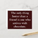 The only thing better than a friend is one who arrives with chocolate. Postcard inspiration and motivation.