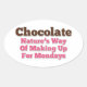 Chocolate, nature's way of making up for Mondays. A cute, funny, humorous chocolate candy saying quote design in pink and brown text font.