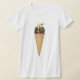 This design is the most delicious looking chocolate ice cream. The ice cream is a scoop of chocolate ice cream in a cone. It then has some white chocolate sauce drizzled over the top of it. This chocolate ice cream design looks great on this womens t-shirt. Perfect for yourself or as a gift