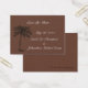 Destination Chocolate Java Beach Wedding Collection mini save the date cards are a handy way of reminding guest of the upcoming special occasion. Cards feature a calming deep bold chocolate brown background with a black palm tree graphic in the lower corner. Mini save the date cards are designed as a large business card style. Offered in three convenient sizes, Design can easily fit any of the following sizes: Chubby (2.5" x 3.5") packaged as 100 cards, Skinny (1" x 3") packaged as 20 cards or Business (2" x 3.5") packaged as 100 cards. To choose a different size simply select the "Business Card Options" tab. Use the custom wording template to customize save the date cards with all your own wording. Change text style and/or font by selecting the "customize it" feature.