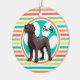 Chocolate Lab; Bright Rainbow Stripes Ceramic Ornament