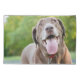 Happy chocolate labrador retriever dog panting at the park