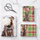 Chocolate Lab Dog Red and Green Plaid Christmas Wrapping Paper Sheets