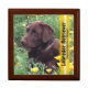 An adorable keepsake box adorned features a close up photograph of a chocolate Labrador Retriever lying in a California Poppy patch.Fill in the template fields with your words or quote, remove the text and text bar or click customize to select a typeface style, size, and color you like.