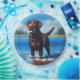 Is there a breed of dog that loves water more than a lab? This design shows a chocolate labrador in blue water.