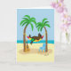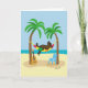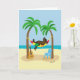 Chocolate Labrador and Hammock and Palm Trees Card for Labrador Fans! Super relaxed dog enjoys his/her nap time in his/her favorite place. Created by Naomi Ochiai.