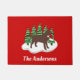 Chocolate Labrador Christmas Evergreen Trees Christmas Doormat for dog lovers who love Labradors. Beautiful Yellow Labrador Silhouette design with Santa Hat. Snow and evergreen trees. Created by Naomi Ochiai.