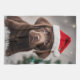 Cute Chocolate Labrador puppy wearing a Santa hat.