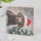 Cute Chocolate Labrador puppy wearing a Santa hat.