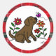 Chocolate Labrador & Green with Heart Classic Round Sticker