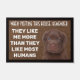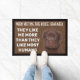 Custom dog doormat with a funny quote. "They like me more than they do most humans." It has a non-slip rubber that won't crack or buckle, resists fading, mold, and mildew and can be easily cleaned with a hose. Be creative - click on CUSTOMIZE to add/remove/change text, change the picture, resize the picture, change colors, background or anything else the customization tool will allow!