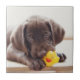 Chocolate Labrador Puppy With Toy Duck Ceramic Tile