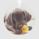 Chocolate Labrador Puppy With Toy Duck Ornament