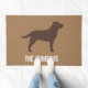 Chocolate Labrador Retriever Silhouette Welcome Mat. Personalize with your family name, Welcome, or delete the default text if you prefer no text at all. This Chocolate Lab design makes a wonderful gift for new home owners, newlyweds, dog dads, dog moms, and anyone who loves their pets like family. More colors are available. Visit Jenn's Doodle World for even more Labrador Retriever doormats and dog lover’s home decor.
