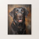 A close-up portrait of a Chocolate Labrador Retriever, painted in a realistic style. The dog has a friendly expression, with its tongue slightly sticking out and its brown eyes looking directly at the viewer. The fur is rendered with meticulous detail, showcasing the texture and depth of the animal's coat. The background is a soft, blurred brown, creating a sense of depth and focus on the dog's face. Perfect gift for labrador lovers.