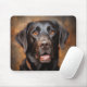 A close-up portrait of a Chocolate Labrador Retriever, painted in a realistic style. The dog has a friendly expression, with its tongue slightly sticking out and its brown eyes looking directly at the viewer. The fur is rendered with meticulous detail, showcasing the texture and depth of the animal's coat. The background is a soft, blurred brown, creating a sense of depth and focus on the dog's face. Perfect gift for labrador lovers.