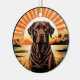 Chocolate Labrador Retro Sunset Dog Lover Ceramic Ornament