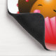 A sweet little chocolate ladybug cupcake with pink sprinkles on a mousepad.