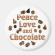 Chocolate lovers know that to have peace and love in your life, you NEED chocolate. Enjoy this delicious looking design with the chocolate candies and the words Peace Love and Chocolate.