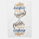 "Chocolate makes everything better" declares the stylized text on each end of this fun kitchen towel. Text colors include dark chocolate brown, gold, and navy blue.