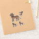 Destei's original cartoon illustration of a cute chocolate brown coat color miniature Goldendoodle breed dog. The design is placed four times on the sheet in two different sizes. There is one larger one and three smaller ones.