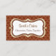 A chocolate and cream pattern decorates this stylish business card. Customize this business card to suit your needs. Add or delete information, change the font style, font size, etc...The design is from original art. Use this vintage style business card for a bakery, candy shop, chocolatier, chocolate shop, cake shop, ice cream shop, bed and breakfast, inn, ice cream shop, coffee shop, cafe, gourmet foods, etc...