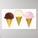 Chocolate, Vanilla & Strawberry Ice Cream Cones Poster