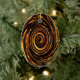 An oval ornament with an attractive spiral abstract whirl motif perhaps a bit like molten chocolate.