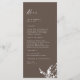 Wedding. White Modern floral reception menu. Long. Brown. Neutral.