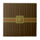 Add a little swank to your style with this simple yet classic pinstripe pattern with a chocolate brown base and a bright lime green accent stripe. This tile can be framed to create a trivet or placed inside a wooden gift box lid. Tiles without a frame will also fit inside the large gift box to create a matching set. Customize the monogram with your initial to make it your own.