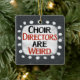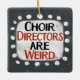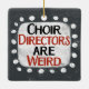 "Choir Directors Are Weird" is a cute text design in gray with black and red text, along with a white accent shape and white textured whimsical dots surrounding it.