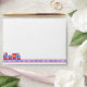 Colorful choo choo train themed baby shower invitation envelope. The outside of the envelope is white, with cute graphics of a blue, red, green, and yellow toy train, on the front and back of the envelope, with the inside done in a blue and white polka dot pattern. Personalize the blue return address, on the back flap of the envelope. Matching baby shower products are available.