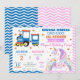 Get ready for a celebration full of chugga-chugga fun and sparkling magic with this adorable Train & Unicorn birthday invitation! Featuring a bright blue train on one side and a dreamy pastel unicorn with a rainbow and floral accents on the other, this design is perfect for a unique shared celebration.