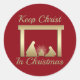 Faux gold toned simple nativity scene, wording Keep Christ In Christmas, is shown against a deep red background - which you can change to any color you prefer.