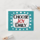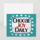 "Choose Joy Daily" is a cute inspirational or motivational quote with a white accent shape surrounded by white textured whimsical dots.