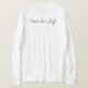 I love this shirt. I had written to the artist asking her if this picture was available on a shirt, and she wrote me back telling me where I could find the shirt. These shirts can be custom made to have a different saying. I loved this saying and went with it. The artist wrote me back later to tell me that she had seen my order go through. How's that for service? Pretty special. It's just as displayed. Perfect!