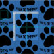 Talk to the paw text with black paw prints on Medium blue background fabric. You can choose your own background color