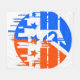 A vibrant circular design features striped and colorful shapes, seamlessly integrating stars. This artwork artfully incorporates elements reminiscent of urban landscapes, harmoniously intertwined with dynamic dripping effects that convey a sense of energy and movement.