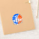 A vibrant circular design features striped and colorful shapes, seamlessly integrating stars. This artwork artfully incorporates elements reminiscent of urban landscapes, harmoniously intertwined with dynamic dripping effects that convey a sense of energy and movement.