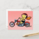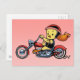 A cartoon biker chick (poultry style), riding a chopper and giving a subtle middle finger. Funny, with attitude, no text, t-shirts, sweats, novelty gift wares.