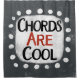 "Chords Are Cool" is a cute text design in gray with black and red text, along with a white accent shape and white textured whimsical dots surrounding it.