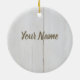 Lightweight, smooth, pure white ornament with nice sheen. Perfect size to be seen from across the room ... and to attract closer inspection! Price was great for ordering enough for the whole family! Clear, bold black design just as requested. Matches the order exactly. Just so nice!