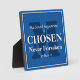 BLUE background with CHOSEN in subtle colour in a tiled pattern, with DEEP BLUE monogram and white text.Stylish custom monogram plaque with the inspirational Christian message: CHOSEN NEVER FORSAKEN. Placeholder name and monogram are customizable, so you can personalize with your own details - simply add the name and monogram, or delete if preferred. Would make a great gift for birthdays, Christmas, Mother's Day, FATHER'S Day, for new believers or those going through a difficult time and need reminding of this truth. Part of the NEVER FORSAKEN Collection by Berean Designs. Also available in red.