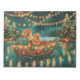 Set sail into the magic of the holiday season with this beautifully detailed illustration, showcasing a proud dog sitting in a festively decorated boat, gliding across a serene Christmas lake. The twinkling lights from nearby pine trees reflect off the water, casting a warm, festive glow that enhances the cozy ambiance. Ornaments dangle from the boat's sides, while glowing lanterns light the way, creating a scene that captures the true essence of Christmas warmth and joy. This nostalgic artwork brings a touch of holiday magic to any space, perfect for those who cherish the spirit of the season.