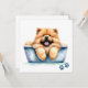 Cute dog watercolor illustration of a happy fluffy Chow Chow dog in a bathtub. Great for dog lovers.